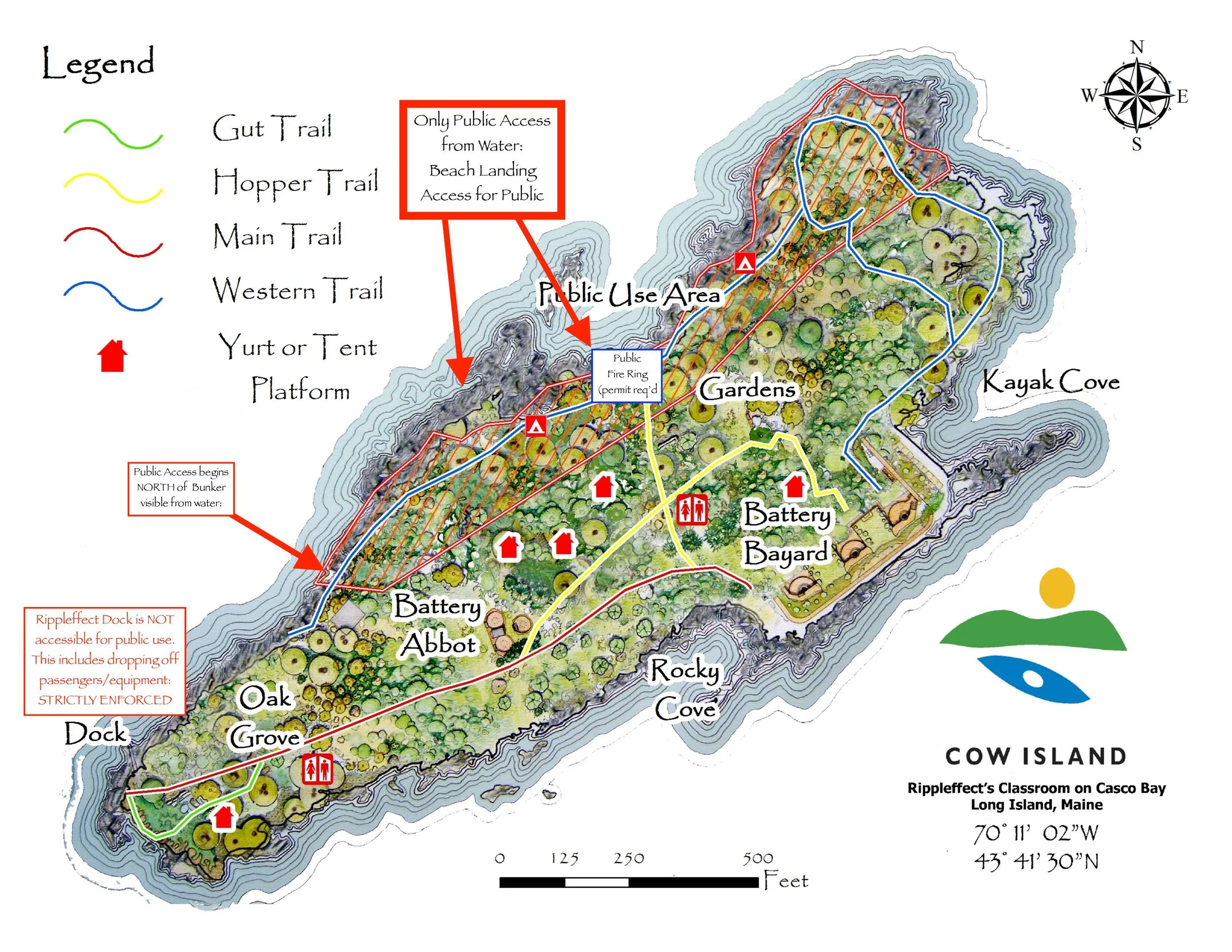 Rippleffect believes that time spent enjoying Cow Island is a wonderful way to explore the beauty of Casco Bay and we hold firm to our promise to provide this public access. As such, we ask that ALL visitors respect our policies and guidelines as the intent of each is to allow us to provide this access in a way that acknowledges the need for safe, responsible, and sustainable use of Cow Island for both the public in designated areas, and the participants of Rippleffect programs.