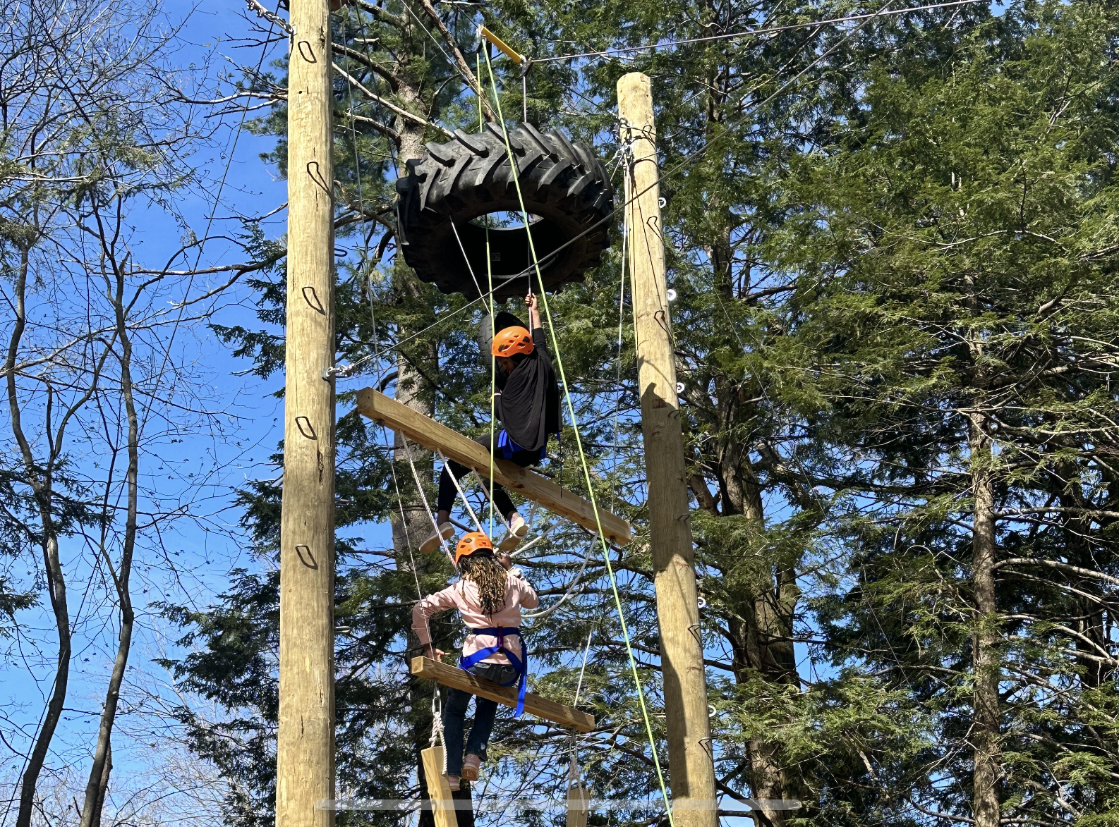 Challenge course elements (high and low elements), climbing wall, group initiatives, games and team-building activities that cultivate skills in conflict resolution, small group problem solving and communication. Activities focus around 3 tiers of leadership: self, peer and community.